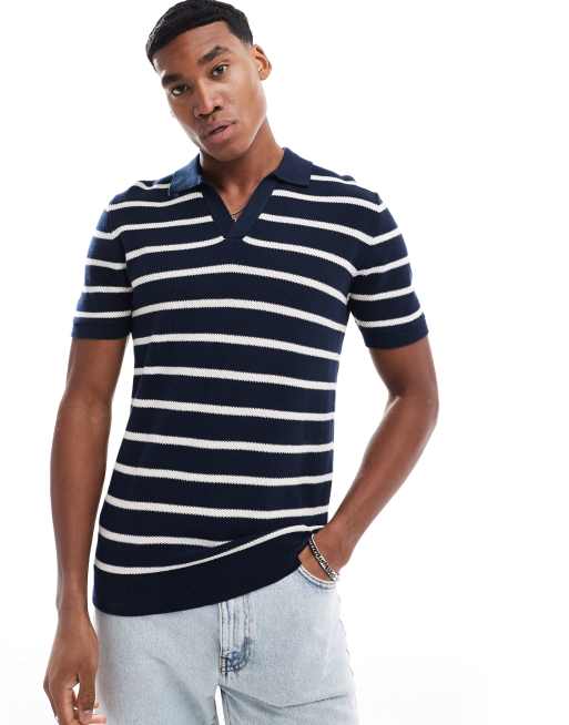 Brave Soul - Marineblå og strikket overdel med knapper og hvide striber