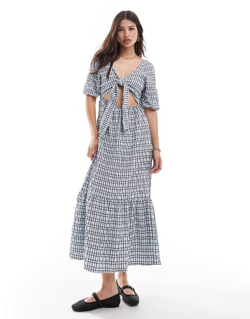 Brave Soul - Maxikjole med blå gingham-tern i bæk-og-bølge-stof
