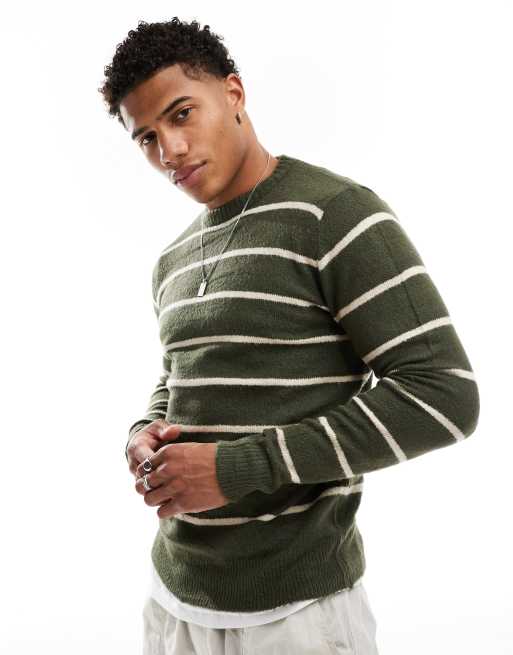 Brave Soul - Mørkegrøn stribet blød trøje i afslappet pasform