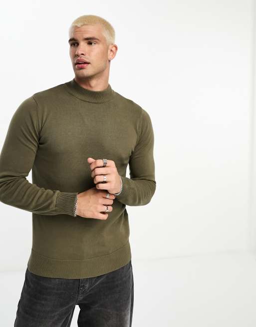 Brave Soul - Mørkegrøn striktrøje i bomuld med rullekrave