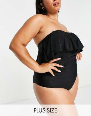 Brave Soul Plus - Sort bandeau-badedragt med flæsedetaljer