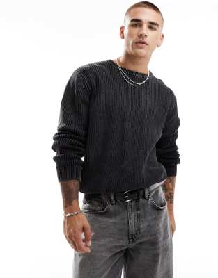Brave Soul - Ribstrikket trøje i grå syrevask