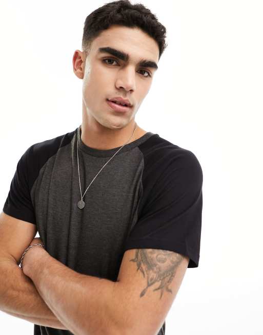 Brave Soul - Sort og koksgrå meleret T-shirt med raglanærmer