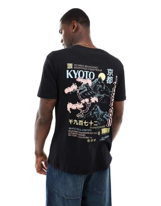 Brave Soul - Sort T-shirt med korte ærmer og print på ryggen