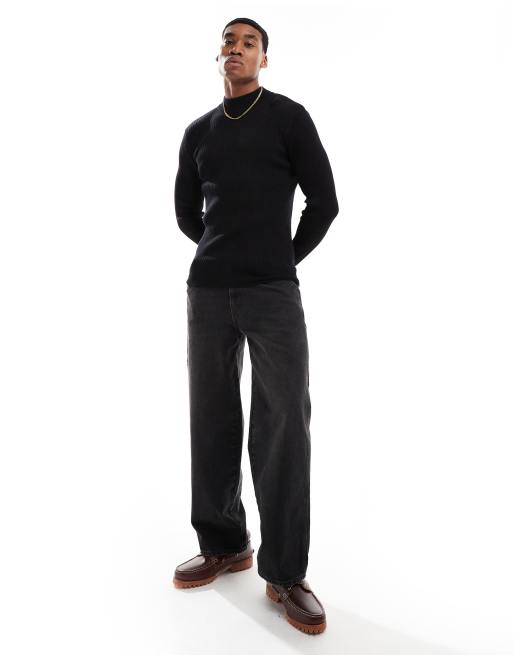 Brave Soul - Sort trøje rullekrave i ribstrikket bomuld