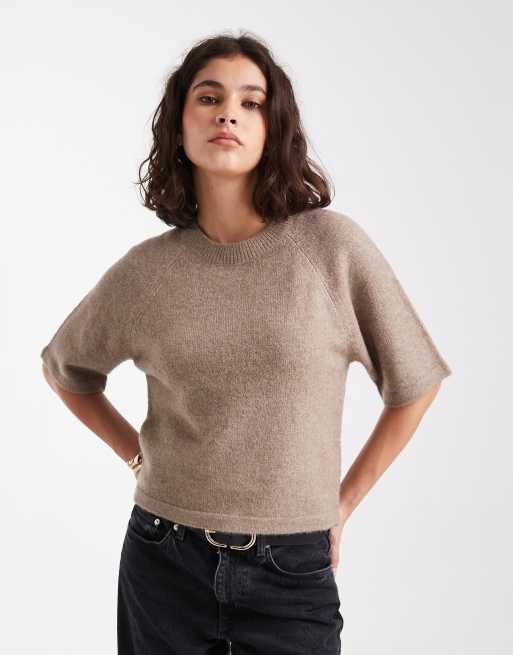 Brave Soul - Strikket minkfarvet T-shirt med rund hals og korte ærmer