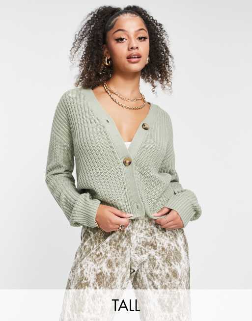 Brave Soul Tall - Daisy - Salviegrøn cardigan i fiskerstrik