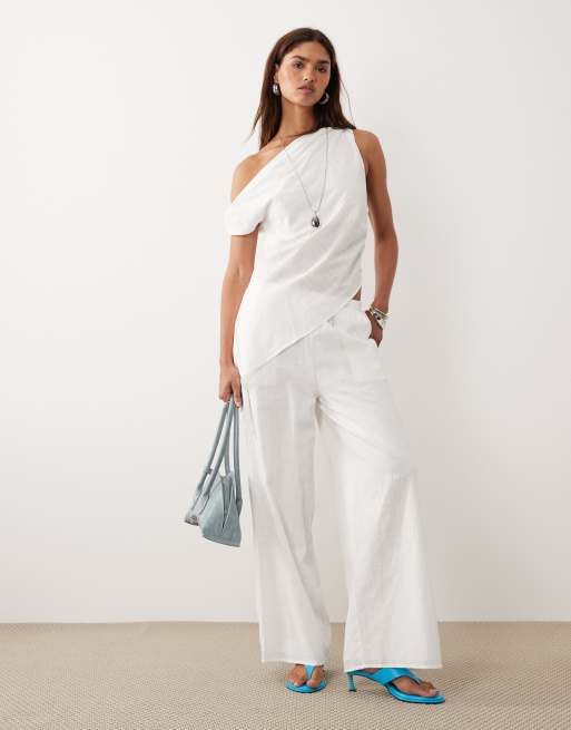 Bronze Snake - Tasi - Hvidt sæt med asymmetrisk offshoulder-top og bukser
