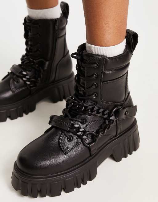 Buffalo - Lion - Sorte chunky støvler med kæde