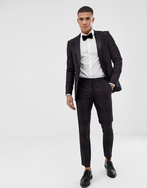 Rød skotskternet smokingsuit fra Burton Menswear