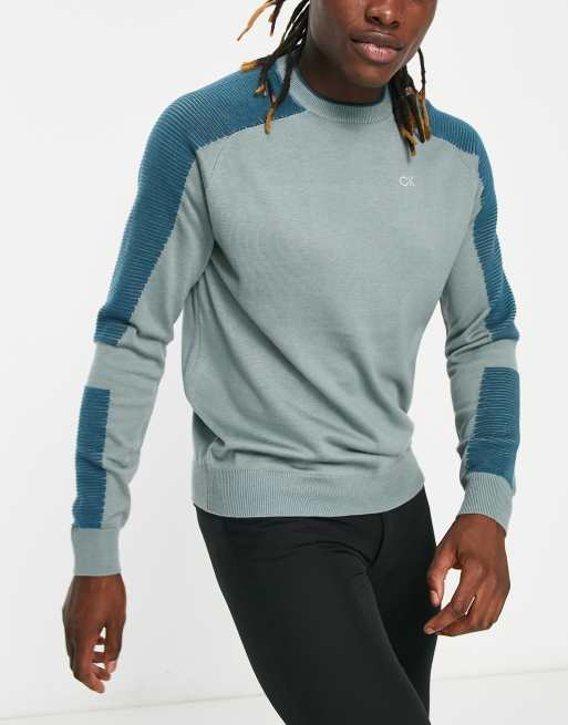 Calvin Klein Golf - Sweatshirt med ribstrikkede detaljer i salviegrøn