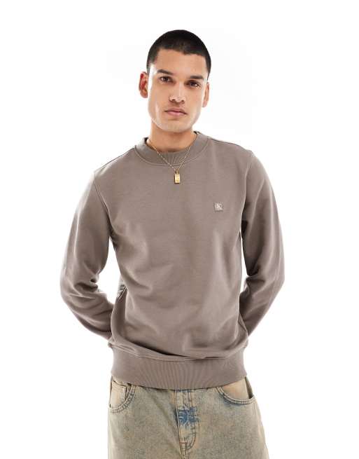 Calvin Klein Jeans - Beige sweatshirt med rund hals og broderet logo