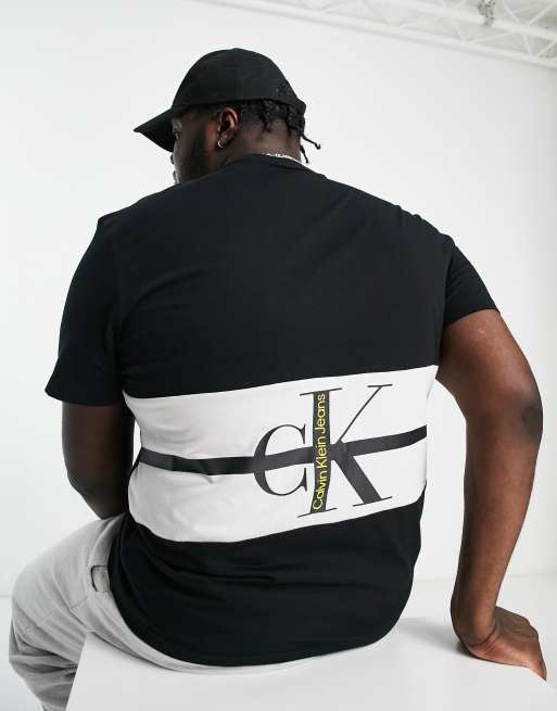 Calvin Klein Jeans Big & Tall - Sort T-shirt med farveblokket stribe og print bagpå
