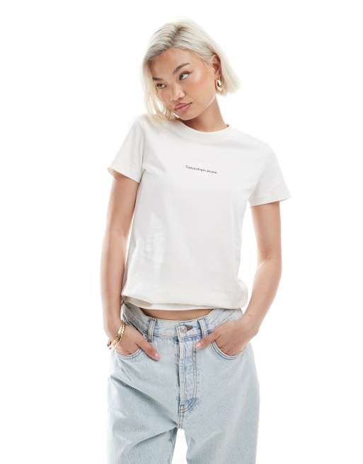 Calvin Klein Jeans - Elfenbenshvid T-shirt med monogramlogo i slim fit
