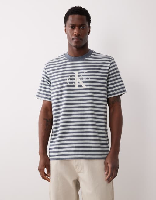 Calvin Klein Jeans - Grå og lyseblå stribet T-shirt med monogramlogo