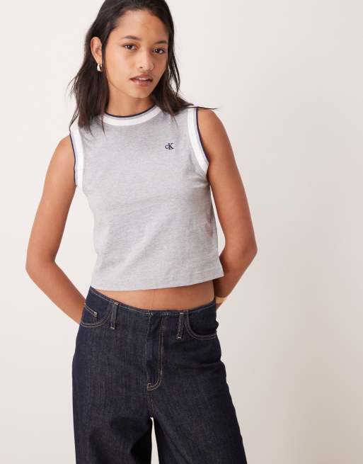 Calvin Klein Jeans - Grå top med monogram og striber i kanterne