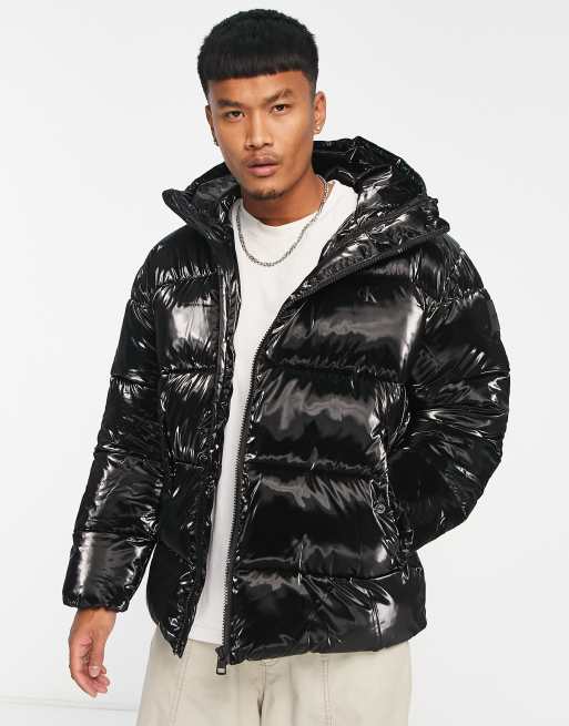 Calvin Klein Jeans - Sort oversized dynejakke med skinnende stof og badgelogo