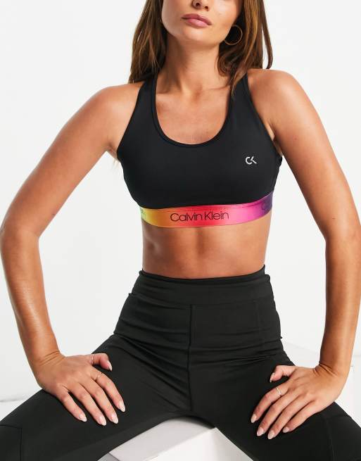 Calvin Klein Performance - Sort sports-BH med logobånd i regnbuefarver - Del af sæt