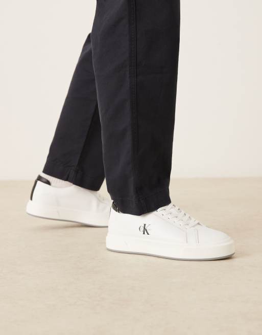Calvin Klein - Hvide sneakers i læder med slidstærk gummisål