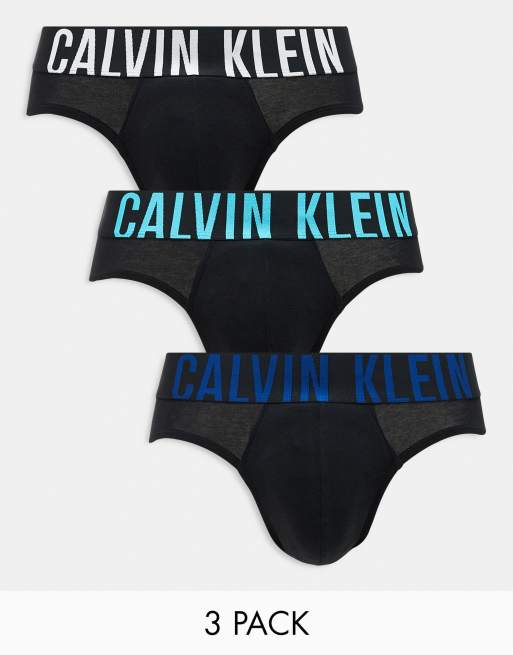 Calvin Klein - Intense Power - Pakke med 3 par sorte briefs med farvet taljebånd