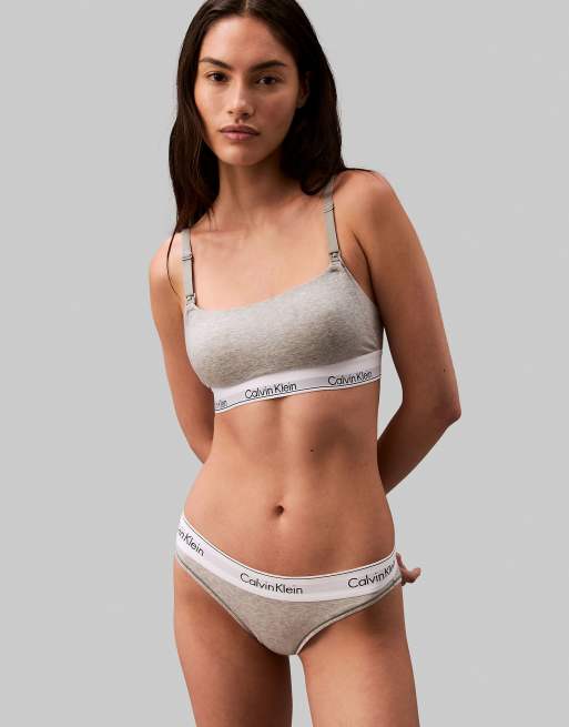 Calvin Klein Maternity - Modern Cotton - Grå amme-bralette med logobånd og dyb rund hals