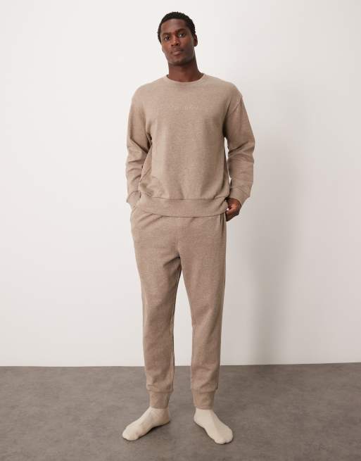 Calvin Klein - Modern Cotton - Beige og meleret lounge-joggingsæt