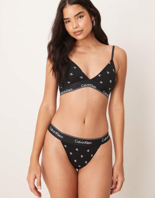 Calvin Klein - Modern Cotton - Sort G-streng med stropper og gennemgående print