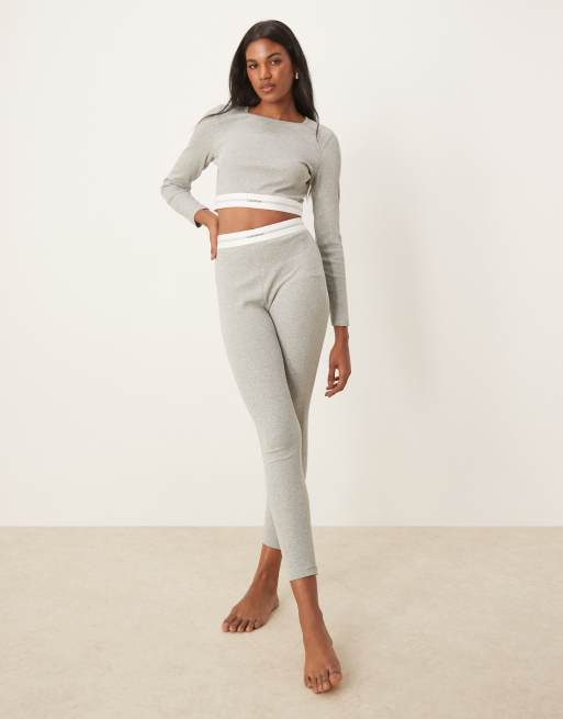 Calvin Klein - Modern - Grå ribstrikkede lounge-leggings med logo-taljebånd