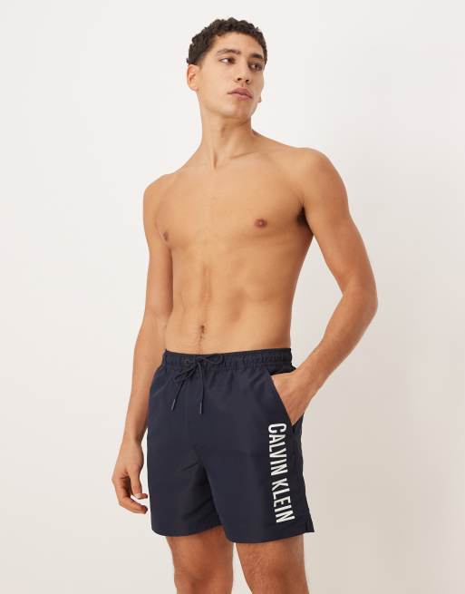 Calvin Klein - Mørke marineblå badebukser med kontrasterende tekst i siden