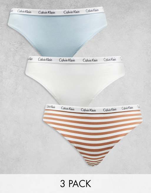 Calvin Klein Plus - Carousel - Pakke med 3 G-strenge med logo i blå/hvid/stribet beige