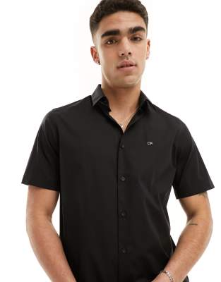 Calvin Klein - Sort kortærmet regular-skjorte i poplin med stræk