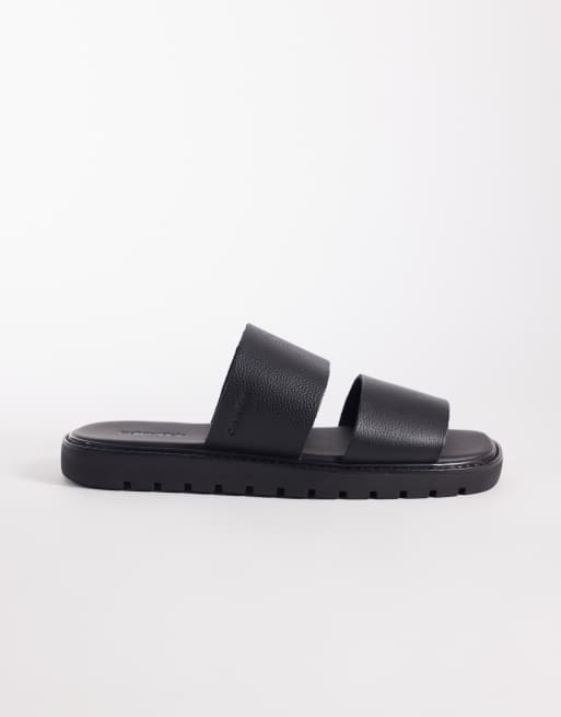 Calvin Klein - Sorte sandaler med dobbeltrem i ægte læder