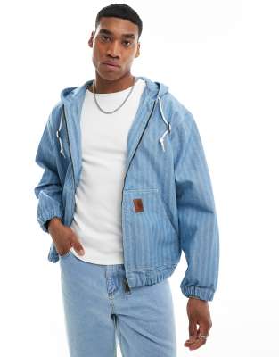 Carhartt WIP - Blå denimjakke med hætte og gennemfående lynlås