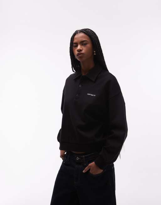 Carhartt WIP - Brenta - Vasket sort polo-sweatshirt