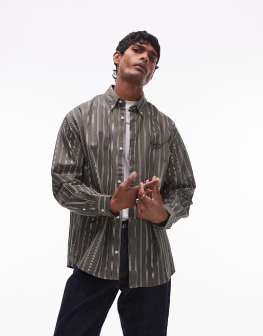 Carhartt WIP - Grøn skjorte med lange ærmer, signaturlogo og striber
