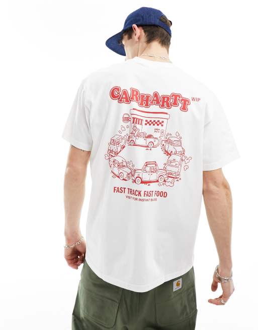 Carhartt WIP - Hvid T-shirt med fastfood-print på ryggen