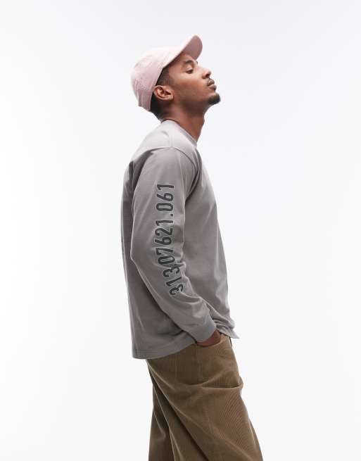 Carhartt WIP - Langærmet grå T-shirt med koordinat-print
