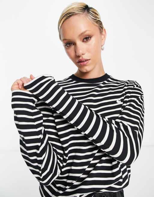 Carhartt WIP - Langærmet oversized T-shirt i sort hvid stribe
