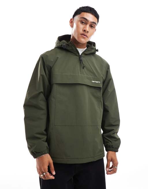Carhartt WIP - Pullover-vindjakke i grøn med 3/4-lynlås