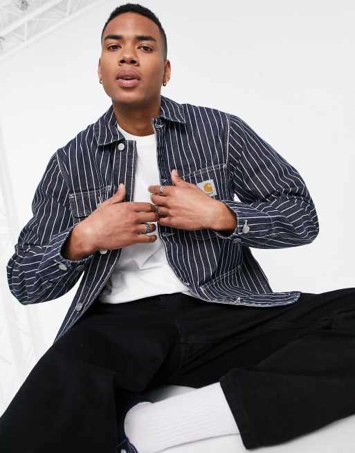 Carhartt WIP - Trade Michigan - Marineblå stribet frakke i hickory-stof
