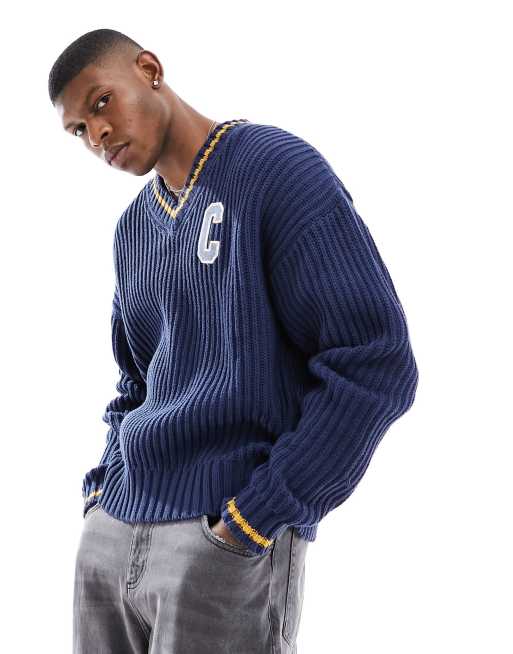 Champion - Rochester - Marineblå trøje i strik med V-hals