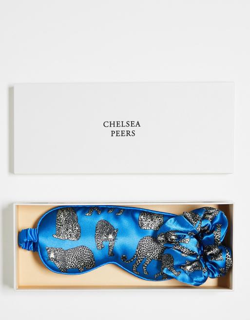 Chelsea Peers - Koboltblåt sæt i satin med øjenmaske med leopardprint og hårelastik