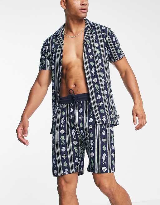 Chelsea Peers - Kort marineblåt pyjamassæt i jersey med grønt søheste-print