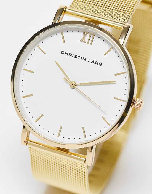 Christin Lars - Guldfarvet armbåndsur med meshrem i rustfri stål