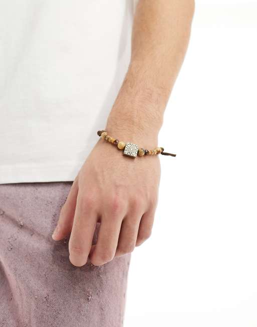Classics 77 - Brunt armbånd med snor, perler og vedhæng med motiv af oldemorfirkant