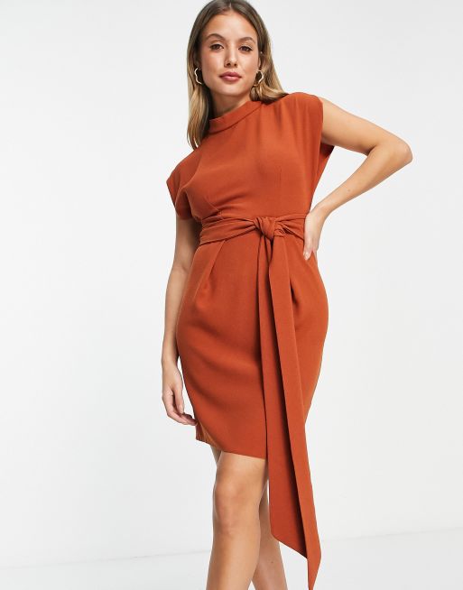Closet London - Minikjole med bindebånd i taljen i kanel