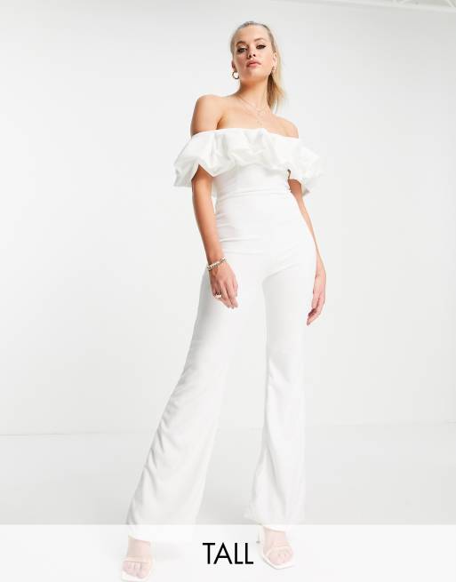 Club L London Tall - Jumpsuit med flæser i hvid
