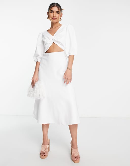 Collective The Label - Hvid midikjole med snoet front og udskåret ryg