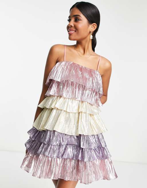 Collective the Label - Lagdelt minikjole i metalfarvet blanding - Kun hos ASOS