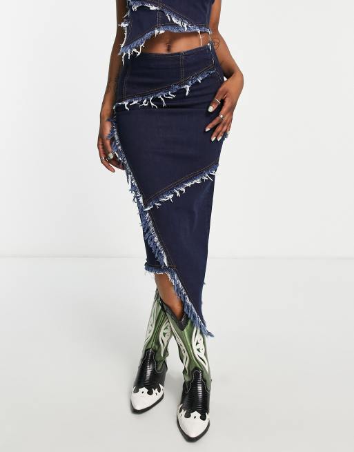 COLLUSION - Asymmetrisk blå midinederdel i denim med synlige sømme - Del af sæt